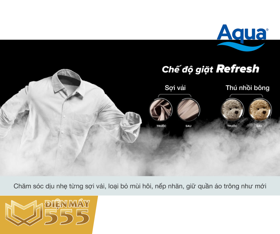 Công nghệ giặt hơi nước Refresh: làm phẳng vải, khử mùi hôi và bụi bẩn bám ngoài, giữ quần áo thơm tho, ít nhăn sau khi giặt.