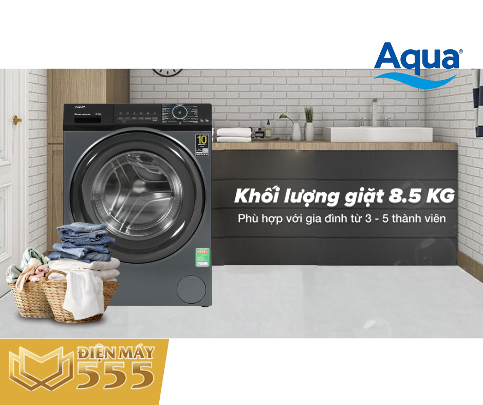 ĐIỆN MÁY 555 CAM KẾT về sản phẩm Máy giặt Aqua Inverter 8.5 kg AQD-A852J BK - Lồng Ngang
