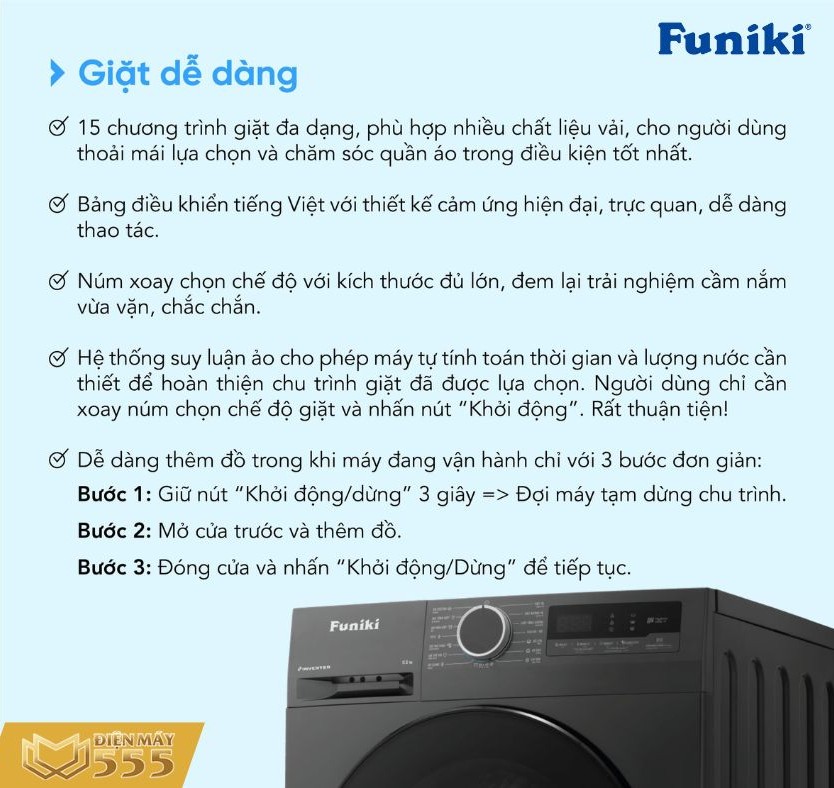 Hãy mua máy giặt Funiki HWM F8105ADG ngay hôm nay để trải nghiệm những tính năng công nghệ tuyệt vời nhất cùng dịch vụ chăm sóc hỗ trợ tận tâm chu đáo từ Hòa Phát.