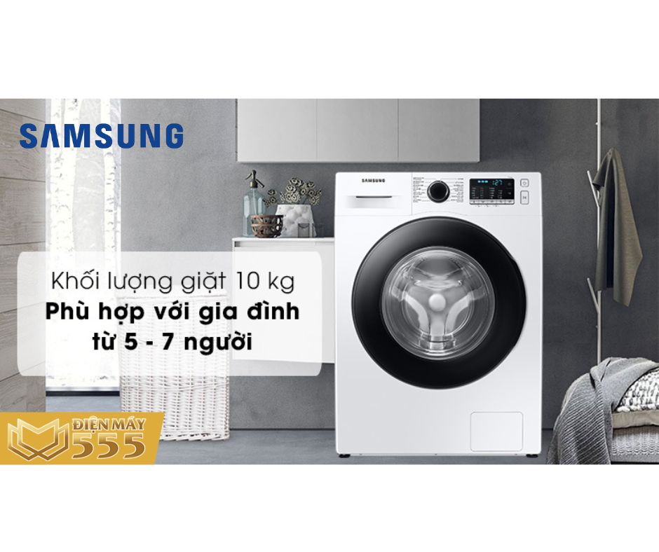 Chiếc máy giặt này có khối lượng giặt là 10 kg phù hợp với những gia đình đông thành viên khoảng 5 - 7 người hay những gia đình có trẻ nhỏ thường xuyên phải thay đồ.