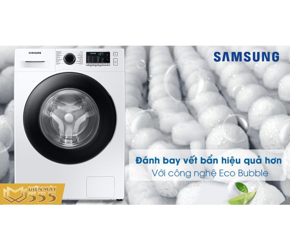 Máy giặt Samsung sở hữu gam màu trắng trung tính hòa hợp với mọi phong cách nội thất từ hiện đại cho đến cổ điển. Máy giặt trang bị bảng điều khiển tiếng Việt giúp các thành viên trong gia đình dễ dàng thao tác.