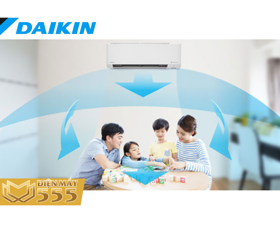 - Điều hòa này hoạt động với cơ chế đảo gió 4 chiều, giúp không khí được lưu thông, làm mát đồng đều các nơi trong phòng.