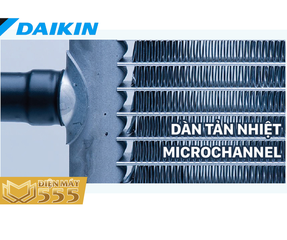 + Chất liệu dàn tản nhiệt Microchannel chống ăn mòn được cấu tạo bởi những cánh tản nhiệt bằng hợp kim nhôm kết nối với các vi ống song song, giúp tăng khả năng truyền nhiệt và giảm độ ăn mòn so với cánh tản nhiệt thông thường.