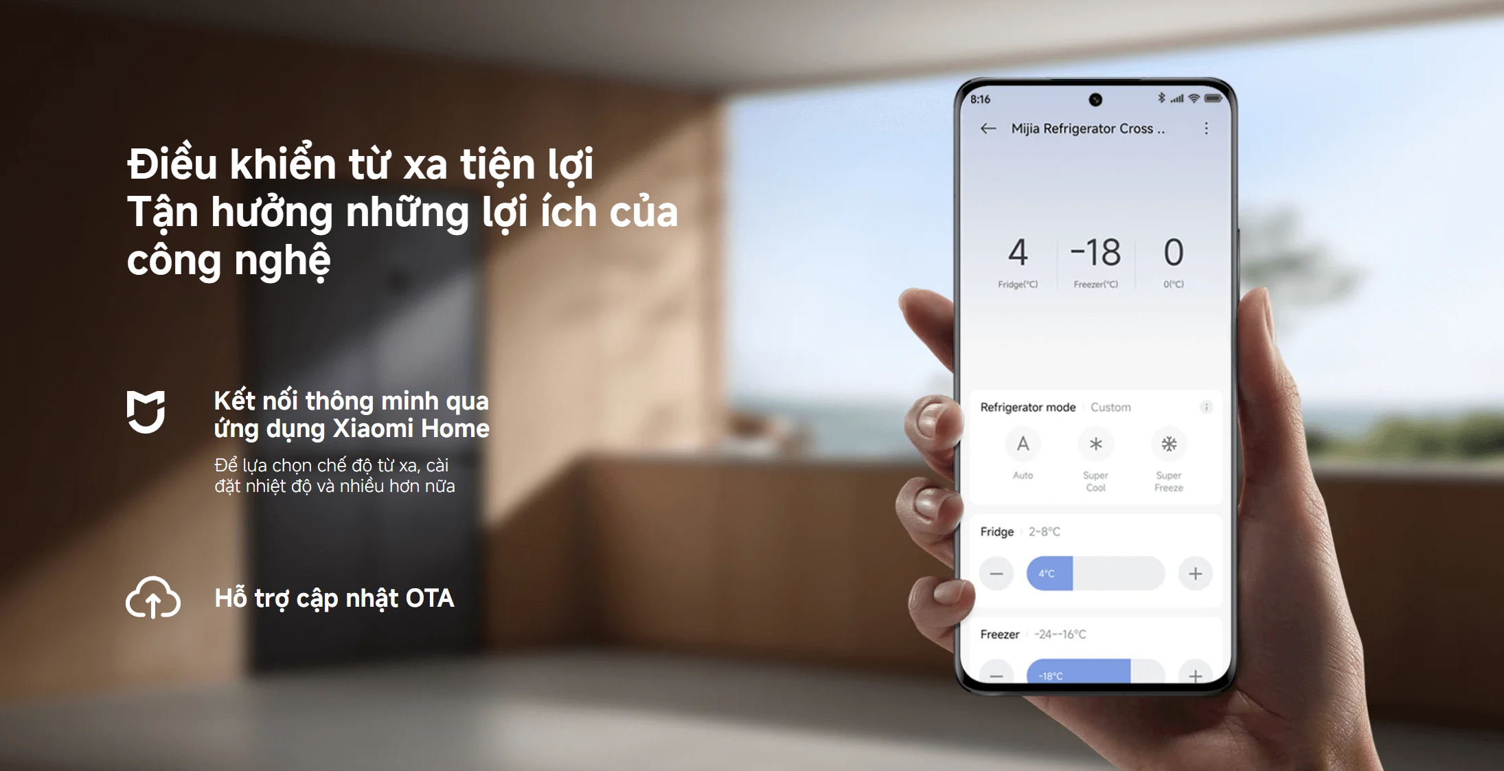Không chỉ là thiết bị gia dụng thông thường, tủ lạnh Xiaomi Mijia còn được tích hợp khả năng kết nối thông minh với ứng dụng Xiaomi Home. Bạn có thể điều khiển từ xa các chế độ làm lạnh, điều chỉnh nhiệt độ hoặc kích hoạt các chức năng đặc biệt chỉ với vài thao tác trên điện thoại.