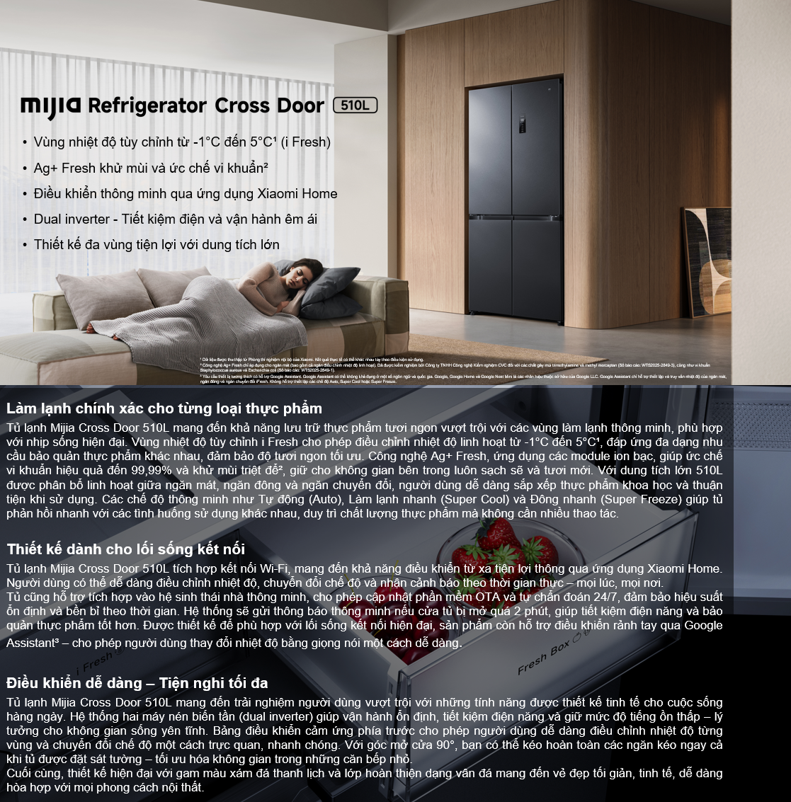 Trong xu thế hiện đại, một chiếc tủ lạnh không chỉ dừng lại ở chức năng bảo quản thực phẩm mà còn là điểm nhấn thẩm mỹ trong không gian bếp. Tủ lạnh Xiaomi Mijia Refrigerator Cross Door 510L là một trong những sản phẩm tiêu biểu hội tụ đầy đủ các yếu tố hiện đại: thiết kế đẹp, công nghệ tiên tiến, tiết kiệm năng lượng và tính năng thông minh. Hãy cùng khám phá chi tiết sản phẩm này để hiểu vì sao đây là sự lựa chọn hàng đầu cho gia đình bạn.