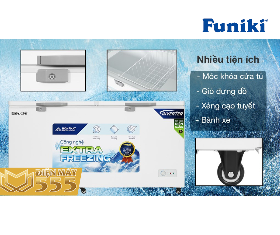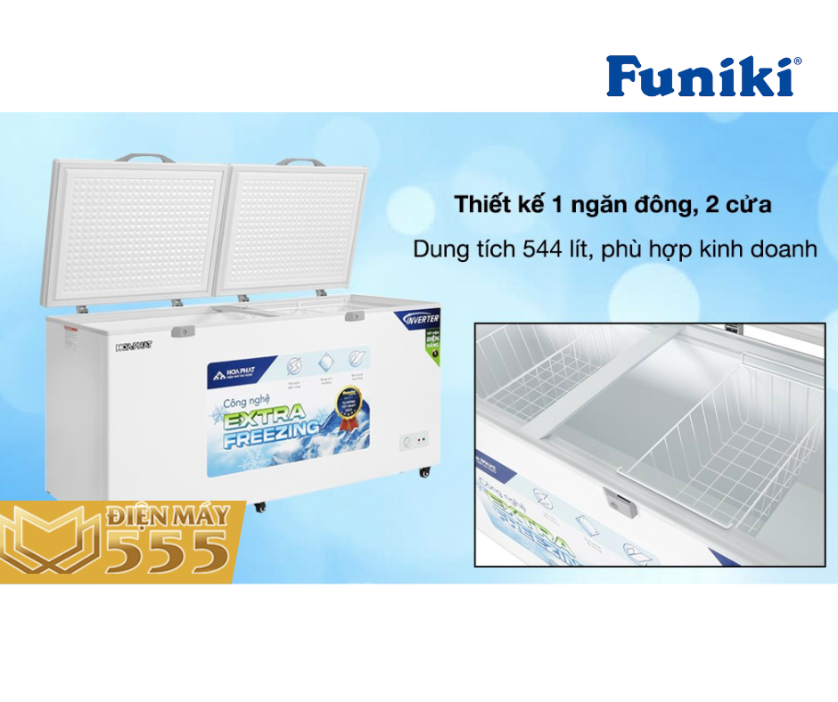 - Với dung tích 544 lít, tủ đông Hòa Phát Inverter này phù hợp cho các hộ gia đình kinh doanh quy mô vừa và lớn, các cửa hàng kinh doanh hải sản, quán ăn,…